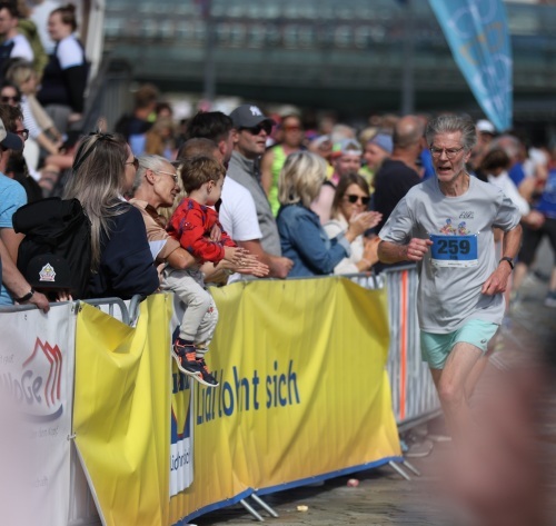 12.09.2025: () - Vom Start der Kinderläufe um 9.30 bis zu den abschließenden 5km-Firmenläufen gegen Mittag war im Start- und Zielbereich in den Havenwelten am Museumshafen Hochbetrieb. Um 10.33 starteten über 450 Läuferinnen und Läufer gemeinsam über die Marathon- und Halbmarathondistanz. Der hierfür vorgesehene Rundkurs von exakt 10.549 m musste demnach vier- bzw. zweimal durchlaufen werden.Das Wetter war mit 24 Grad zwar angenehm, wenig Schatten und stürmische Winde am Weserufer forderten ihren Tribut. Die Streckenführung war einerseits spektakulär mit Strandpromenade, Geesteüberquerung, Fußgängerzone und durch den Museumshafen, andererseits anspruchsvoll aufgrund äußerst unterschiedlicher Beläge von Asphalt über verschiedene Pflaster zu Schotter und sogar Holz (auf Holzstegen durch den Museumshafen), hinzu kamen Brückenüber- und -unterquerungen mit besonders in der letzten Runde spürbaren Steigungen. Also waren nicht unbedingt Bestzeiten zu erwarten.